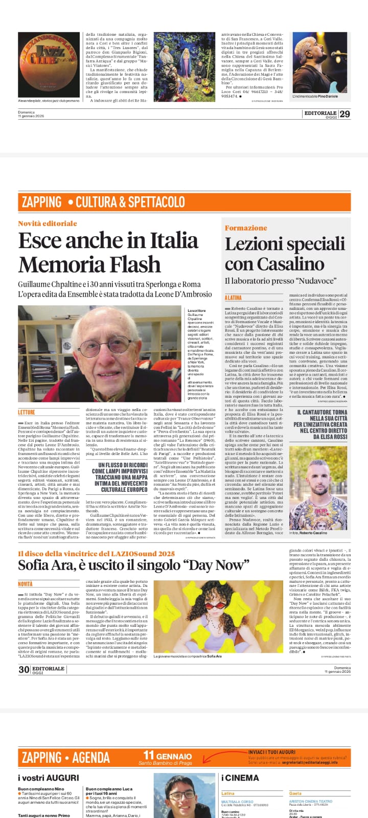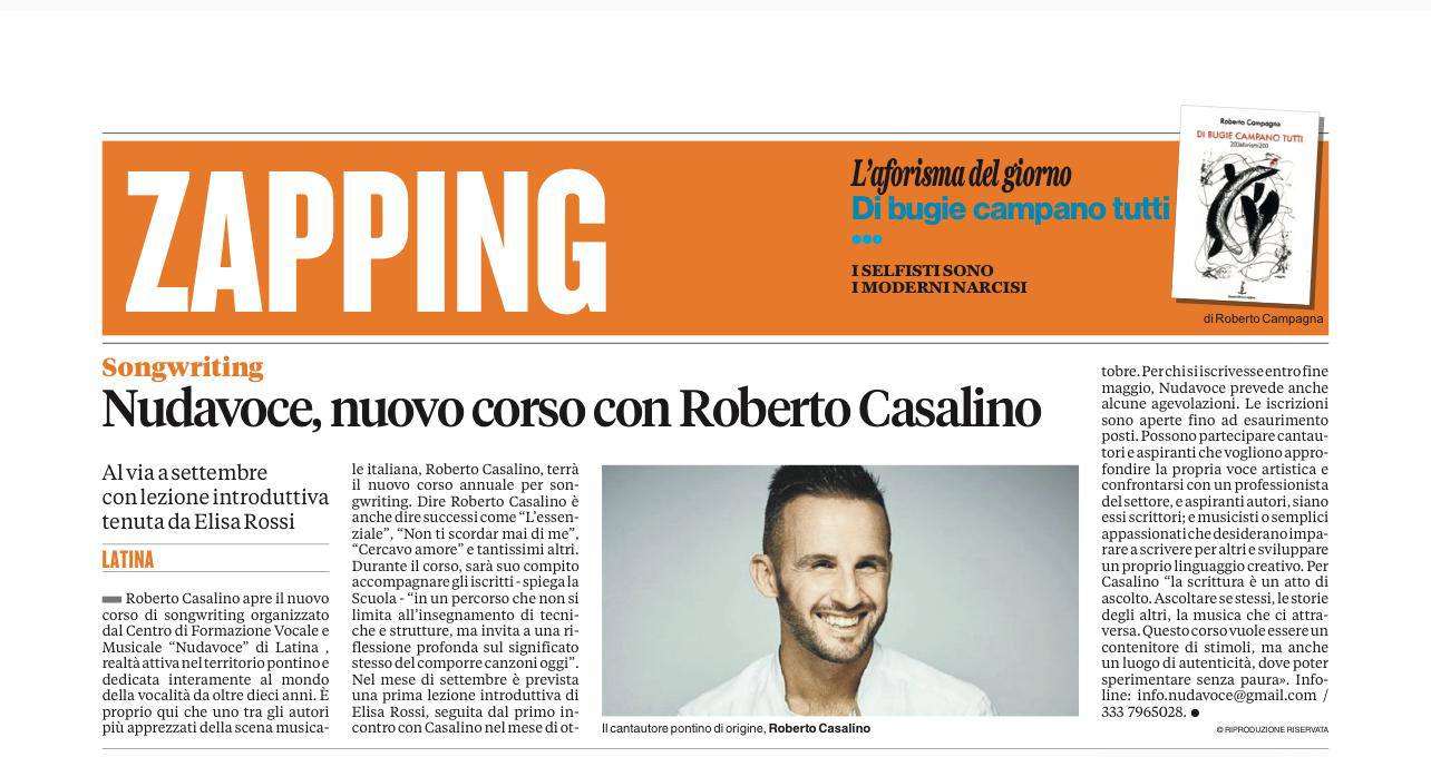 LEZIONI SPECIALI CON CASALINO: Il Laboratorio presso NUDAVOCE - LATINA OGGI del 11. 01. 2026